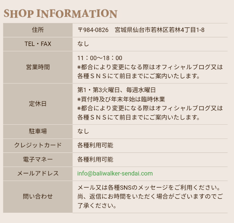 ショップインフォメーション内のメールに関してですが