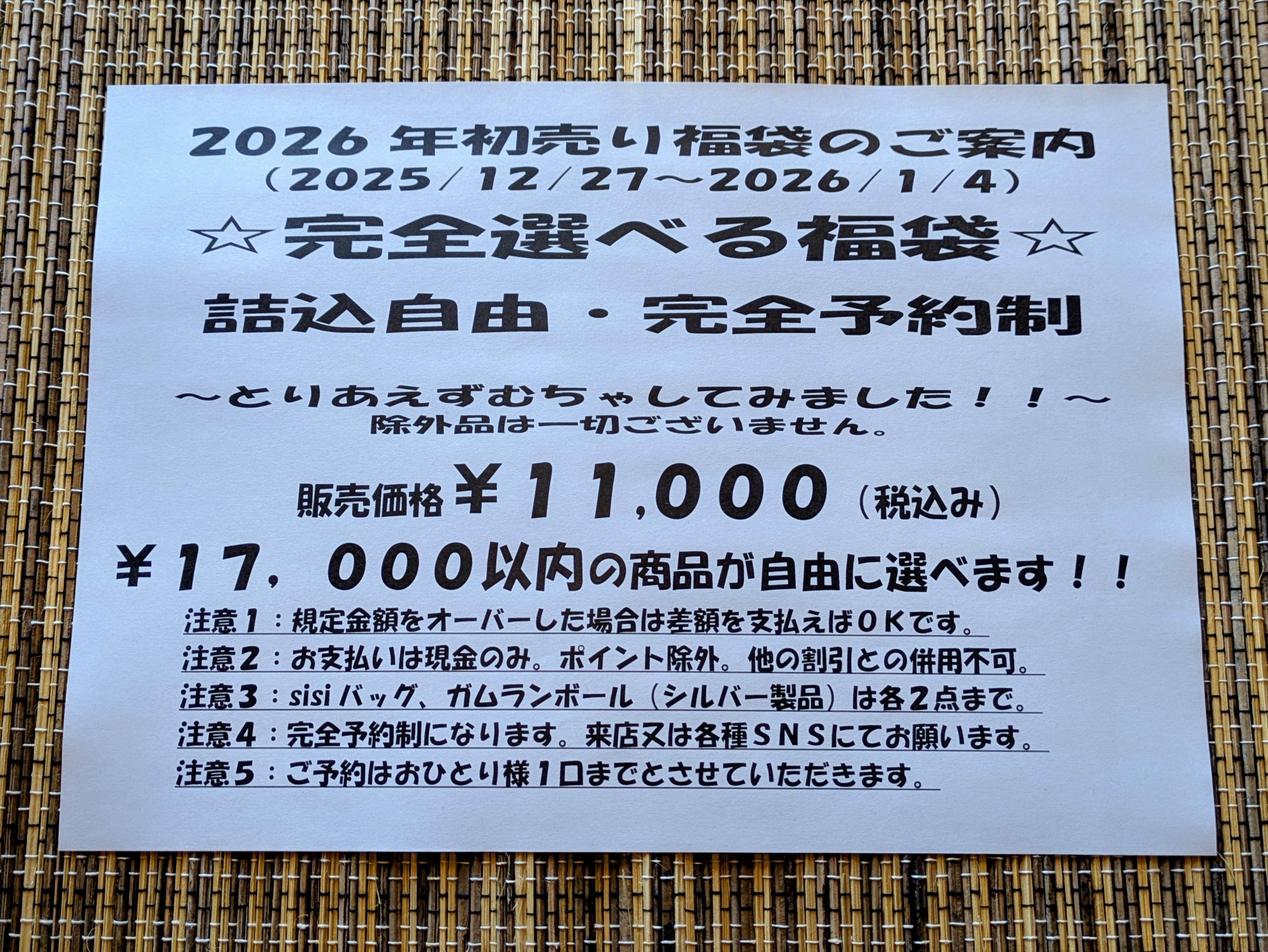 DMでの予約の際は【福袋希望】と【お名前】をご記載ください。
